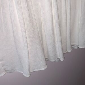 New York & Company white boho inspired mini dress. In excellent condition! Crew neckline with keyhole front & two tassels hanging down. Beautiful stitching along the waistline. Peasant balloon sleeves. Slight ruffle hemline. Mini silhouette & lined. Perfect to dress up or down for summer! Size small, fits true to size.