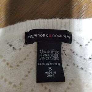 chevron knit sweater, V-neck sweater, small size sweater, knitwear for women, women's winter top, women's white sweater, New York & Company sweater, acrylic nylon sweater, women's long sleeve top, lightweight white sweater, textured design sweater, versatile women's sweater, stylish white sweater