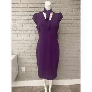 New York & Company Women Deep Purple Sheath Bow Tie Dress Size M NWT