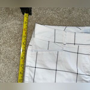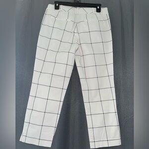 Stylish white chinos with a bold grid pattern. Perfect for a modern look.