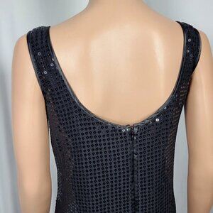 All over sequin black sleeveless NY & Co Dress in a Women's Size 8. Wonderful shape not missing any sequins. Length is going to fall at/slightly below the knee.