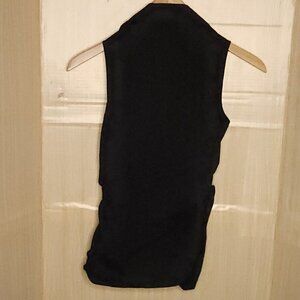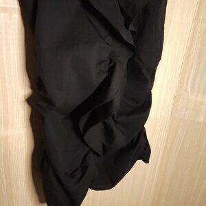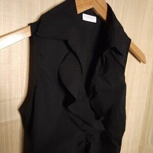 New York & Company women’s black sleeveless ruffle front button front blouse small. Gently used condition. Measurements are: .24 ½" from shoulder to hem, and 19” from armpit to armpit.