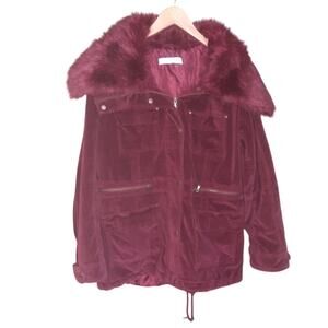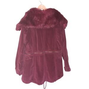 New York & Company Womens Burgundy Zip and Snap Front Removable Fur Size XL