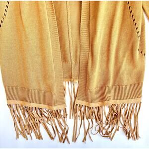 New York & Company Women's Cardigan Sweater Fringe Open Front Long Sleeve XS