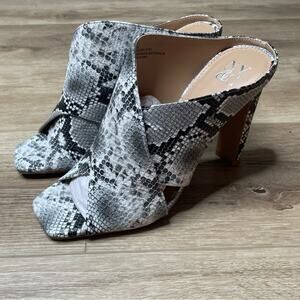 New York & Company Women's Gray Snakeskin Print Slip On Sofia Dress Sandals sz 9