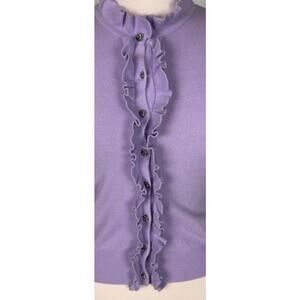 New York & Company Womens Small Light Purple Ruffled Cardigan Sweater
