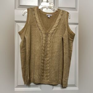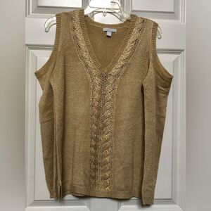 New York & Company Women's Sweater Top Size Large Cold Shoulder Knit Tank Top beautiful designs at front