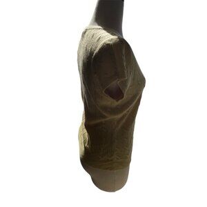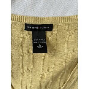 New York & Company Womens V-Neck Cable Knit Short Sleeve Sweater Large Yellow Ac