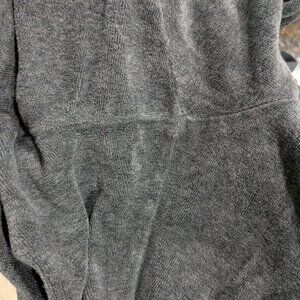 New York & Company women’s velour pants in gray, size XL Petite, made from a soft and comfortable cotton/polyester shell with a cotton/spandex trim. Features an elastic waistband with drawstring, no pockets, and a casual relaxed fit. Machine washable. Pre-owned in excellent condition. Measurements: approximately 38" waist, 27" inseam, 36" overall length, 10" front rise, 16" rear rise.