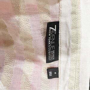 New York & Company Women’s White Gold Striped Short Sleeve Button Down