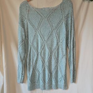 New York & Company XL Light Turquoise Knit Sweater With Open Details And Sequins