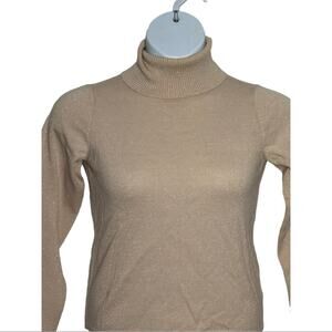 New York & Company Y2K Rose Gold Glitter Fitted Turtleneck Sweater Size Small
