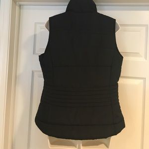 New York & Company black quilted vest. Has slimming stitching. Has pockets in the front. Also zips and snaps up the front. 100% polyester. In great condition. Size Medium..