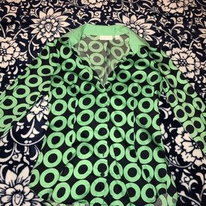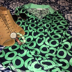 Pretty Button up 💚💙 very comfortable, also stretch. Easy to dress up or to wear casual. Gently worn, worn only twice.