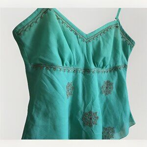 New York & Company embroidered spaghetti strap tank top Handkerchief Hem Size 8