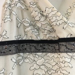 New York and Company lace and beaded dress top size Medium-only worn twice! Gorgeous black floral gauze overlay. Cute black belt detail with beading. Sweetheart neckline. Sleeveless. Smoke free home. Beautiful cream color with black detailing. Smoke free home.