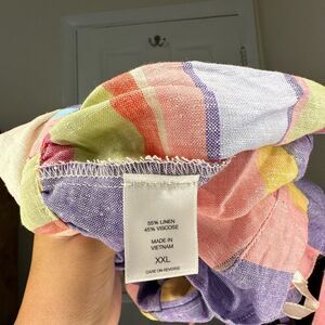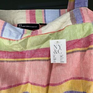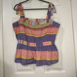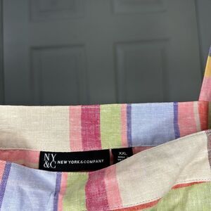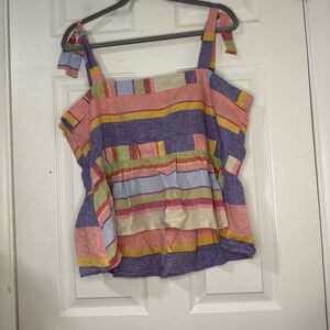 New York & Company stripe tie strap peplum Linen Blend Spring top Size 2XL