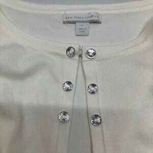 New York & Company white cropped 3/4 sleeve cardigan rhinestone buttons size M