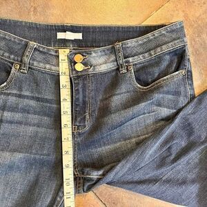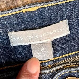 New York & Company Distressed Patch Denim Jeans 14. See all pictures for level of distress. Measurements in photos. In good, pre-loved condition. Comes from a smoke free home.