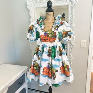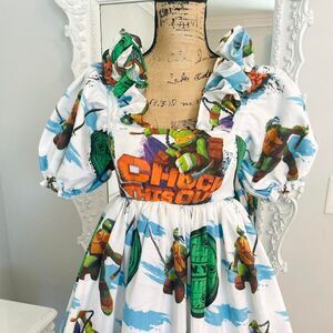 New York Couture Reworked Teenage Mutant Ninja Turtles Ruffle Puff Sleeve Dress
