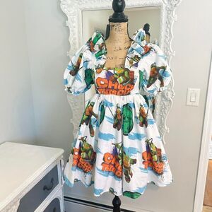 New York Couture *One of a Kind* Teenage Mutant Ninja Turtles Ruffle Collar Puff Sleeve Dress