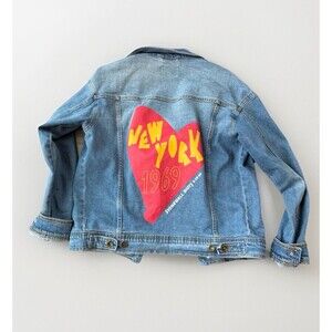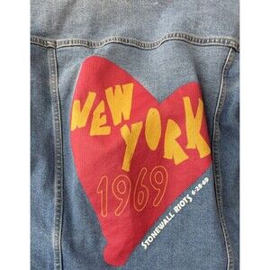 New York Denim Oversized Jean Jacket Size XS Patches Stonewall Riots
