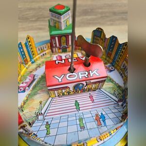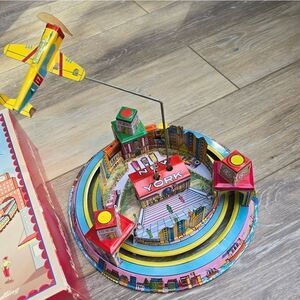 New York Express tin wind up train and plane vintage collectible toy