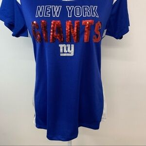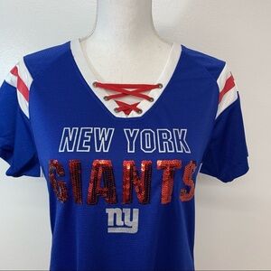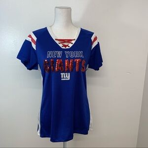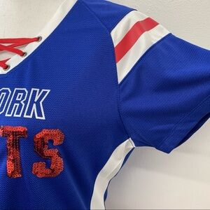 New York Giants Jersey Polo Woman Large Sequins Blue Red Team Apparel Bling