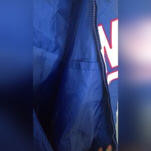 Stylish blue Giants NFL jacket with white accents. Perfect for fans.