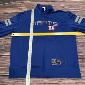New York Giants NFL NFC East Blue Full Zip Track Jacket Pockets Size Large EUC Good pre-owned condition, no holes, rips, stains or other obvious defects