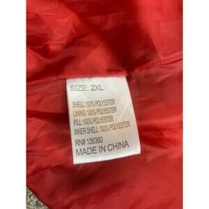 Warm quilted puffer with embroidered “ny” chest logo, full-zip front, zip hand pockets plus zip chest pocket, elastic cuffs, and drawcord hood with soft lining. Made in China, materials made of polyester.