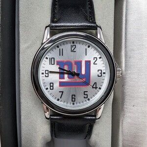 New York Giants Stainless Steel Flask and Watch with Leather Strap Gift Set.