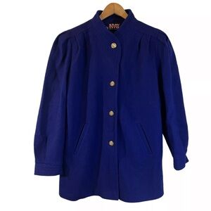 New York Girl Vintage Peacoat Size 14 Indigo Blue Purple Chunky Buttons Pleated