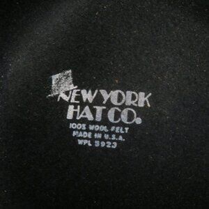 New York Hatco 100% wool black hat. The hat doesn't have a size, but the opening diameter is approximately 7". I ship fast and package securely for safe delivery!