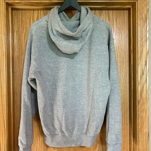 ๐ฏ Hooded sweatshirt with drawstrings and front pocket. Gray and white "New York" printed logo on front.