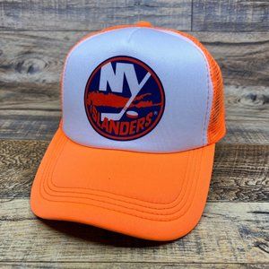 New York Islanders Mens Trucker Hat Orange Snapback Retro Logo Hockey Ball Cap