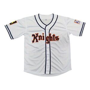 The New York Knights Roy Hobbs #9 Baseball Jersey is a meticulously crafted piece that embodies the spirit of the game. Featuring high-quality stitching, this jersey showcases the iconic number 9, symbolizing excellence and dedication. Designed for both comfort and style, it is perfect for fans and players alike, making it an essential addition to any baseball enthusiast's wardrobe. 100% Polyester.