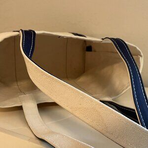New York LL Bean Boat and Tote Bag Classic Style Navy and Cream Canvas