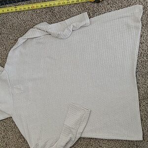 Elegant cowl neck sweater with stylish button accents. Soft and comfortable fabric. Perfect for layering.