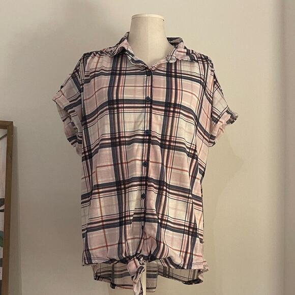 New York Laundry Pink & Black Plaid Button-Up Women’s Top