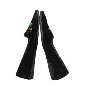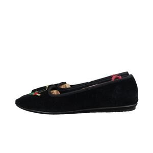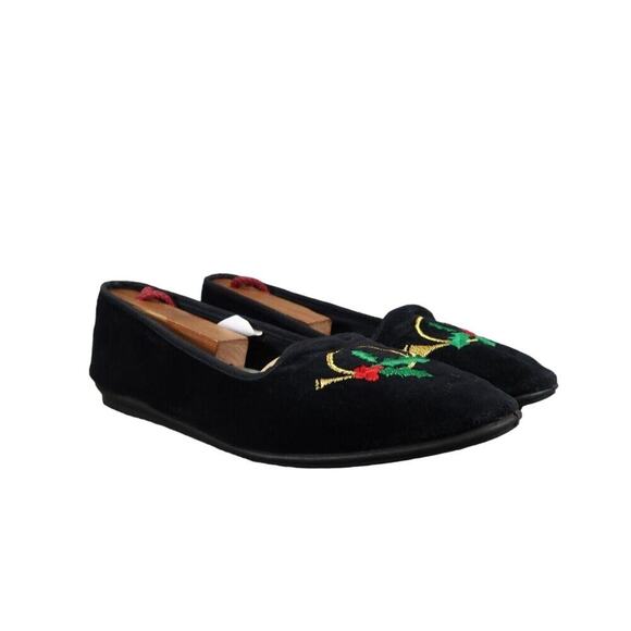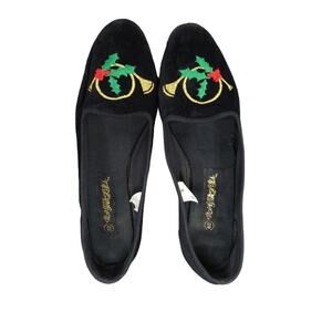 Used New York Lites Shoes Womens 8 Slippers Velvet Embroidered Horn Holly Black Flats