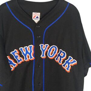 New York Mets Baseball Jersey Mens XL Black MLB Majestic Santana 57 Button