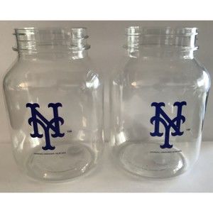 New York Mets Mason Jar Cups-Churchill Container 2016 (2) Plastic Cups
