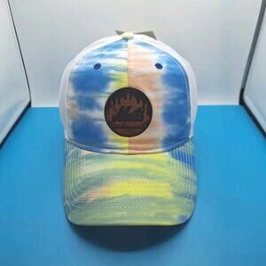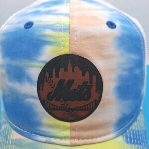 New York Mets Tie Dye Trucker Snapback Leather Patch Hat MLB The Game Cotton