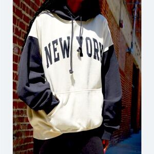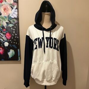 New York Oversized Graphic Hoodie - Dark Navy and Off White, size L