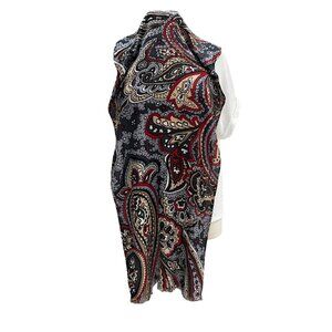Wrap yourself in the vibrant charm of New York's paisley print scarf. This elegant accessory, with its rich red and black hues, adds a touch of boho chic to any outfit. Measuring 70 inches by 19 inches, it's perfect for draping over your shoulders or wrapping around your neck.