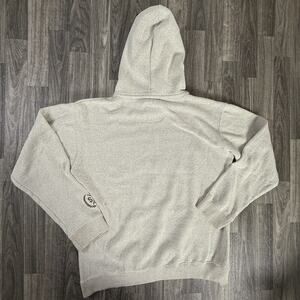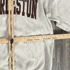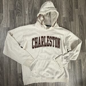 This New York Popular hoodie features a soft cream knit construction with a bold “CHARLESTON” chenille applique across the chest. Made of 60% cotton / 40% polyester (tag reads “Designed in Brooklyn, Made in Pakistan”). It has a front kangaroo pocket, ribbed cuffs & hem, and a cozy lined hood. This piece gives vintage varsity / collegiate streetwear vibes. It’s neutral enough to style with denim, joggers or layer over tees.