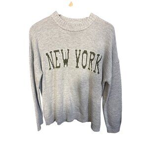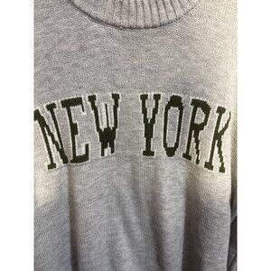 This light gray New York sweater offers a comfortable and stylish fit for casual outings. Made from a soft acrylic blend, this sweater combines warmth with a modern aesthetic. The bold New York print adds a distinctive touch, making it a versatile addition to any wardrobe.