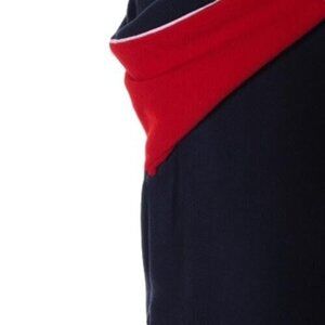 Navy fleece shows slight signs of wear. No major flaws noted.