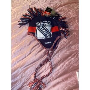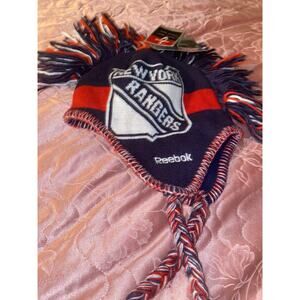 New York Rangers NY Boys Face off Reebok Hat Cap NHL Fleece Tassle New with Tags